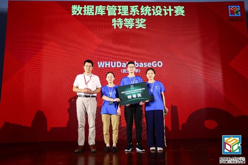 共有4支参赛队伍入围决赛,通过10天的性能测试比拼,WHUDatabaseGo队以性能的绝对优势从382支参赛队(共998名参赛队员)中脱颖而出,最终斩获数据库管理系统设计赛唯一的特等奖,其它3队分获两项二等奖和一项三等奖。