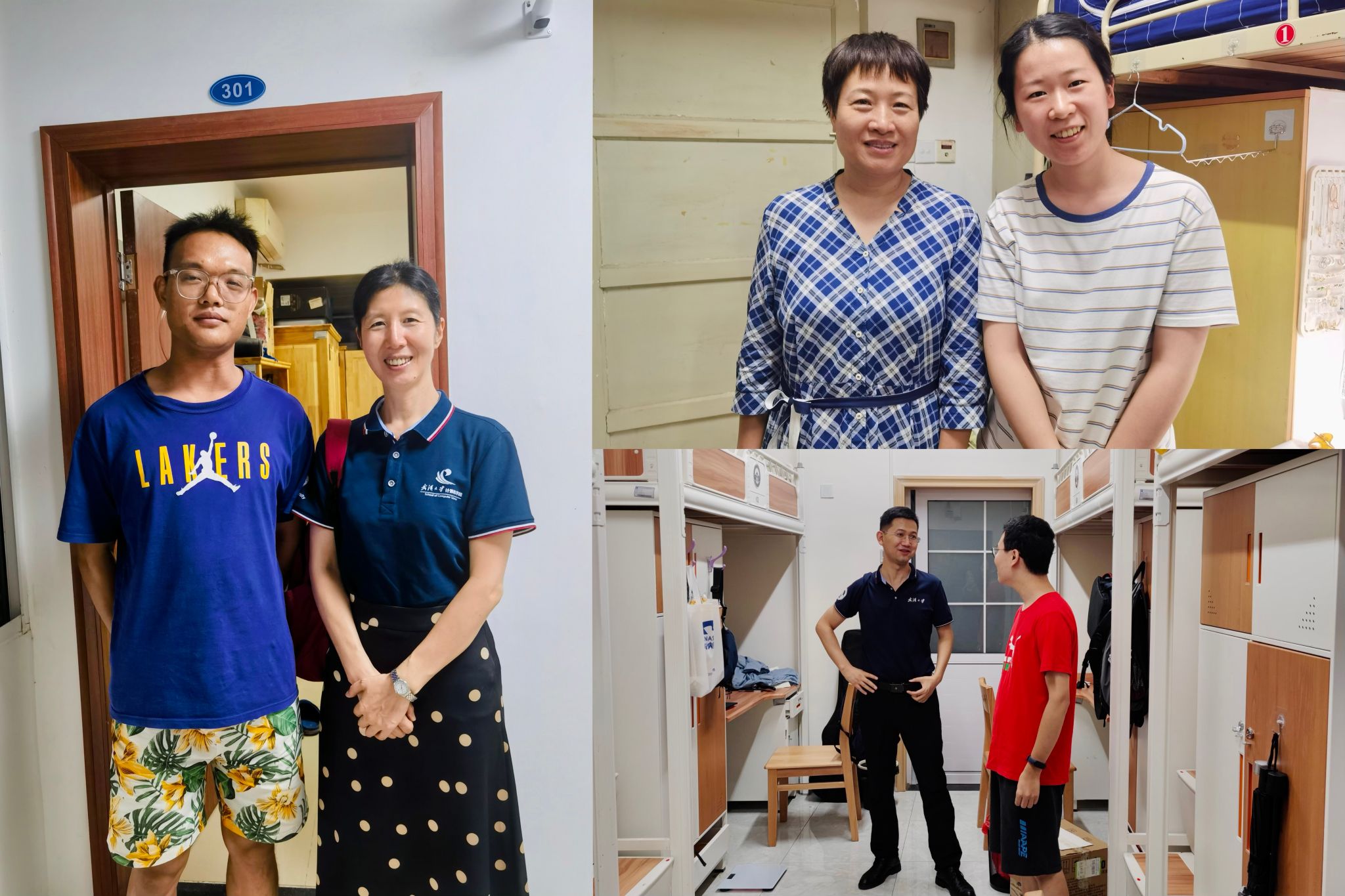 迎新点,考察了解学院迎新情况,慰问迎新工作人员,并与新同学们进行了亲切友好的交流,留下了珍贵的合影。