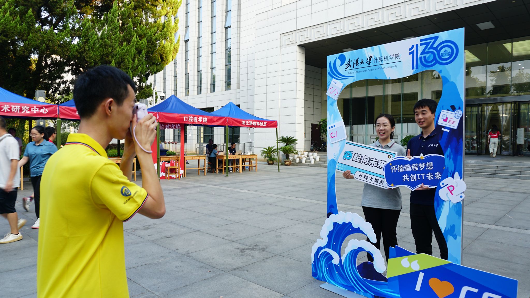 “三二一,开学快乐——”报到完成后,不少新生和家长纷纷举起“e起向未来,计科大舞台”“为计院打call”“怀揣编程梦想,共创IT未来”等手牌,来到学院搭建的合影框前下打卡留念。研究生辅导员还为同学们拍摄了拍立得留作入学纪念。